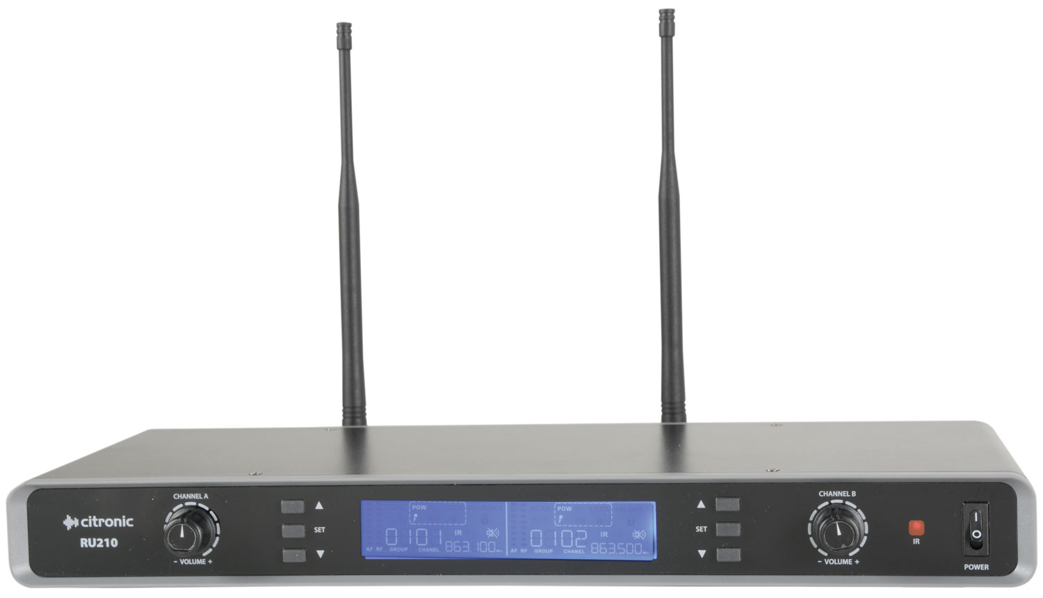 1U Tuneable Dual Channel UHF Beltpack Microphone System : citronic RU210-N