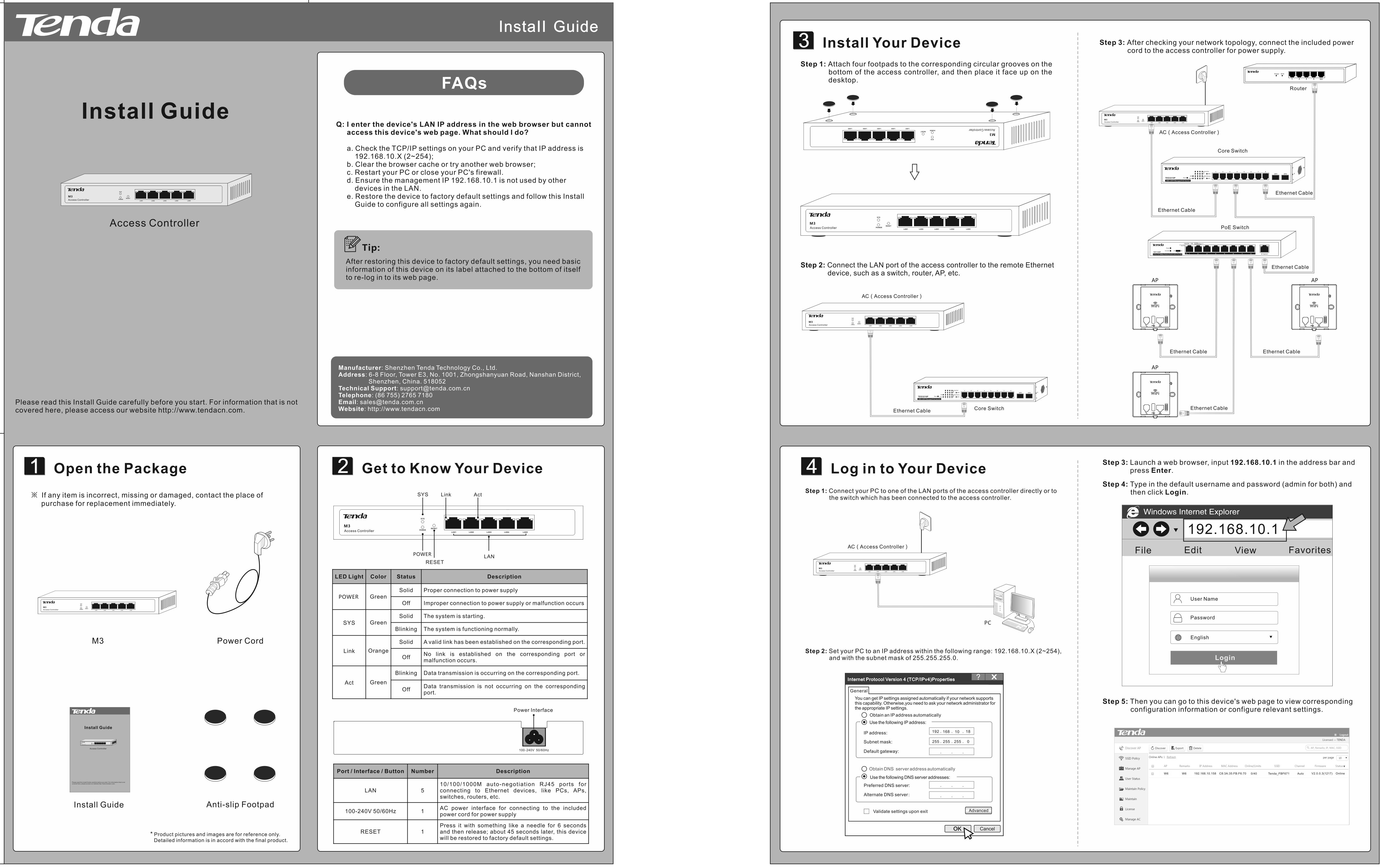 The M3 Access Point (AP) Controller is deployed in the branch network mode, and you simply connect the M3 to the core switch without changing your network topology. The M3 Access Point (AP) Controller can manage and monitor all the indoor AP such as the Tenda i6 Access Point units within your network. You can edit the description, SSID, channel, security, output power for all your APs in the LAN network. The built-in 5 gigabit Ethernet port provides faster data transfer.