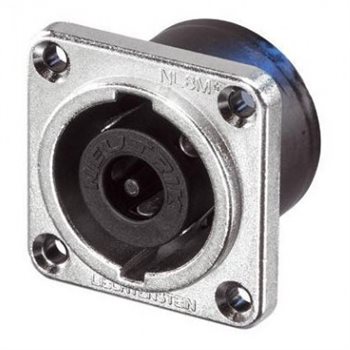 NL8MPR 8 pole chassis connector, nickel metal square G-size flange, countersunk thru holes, 3/16" flat tabs The speakON panel mount connectors are the standard chassis connectors for loudspeaker / amplifier interconnections. They feature a unique metal locking system, making contact only once fully locked. The speakON receptacles are robust, versatile and easy to terminate.