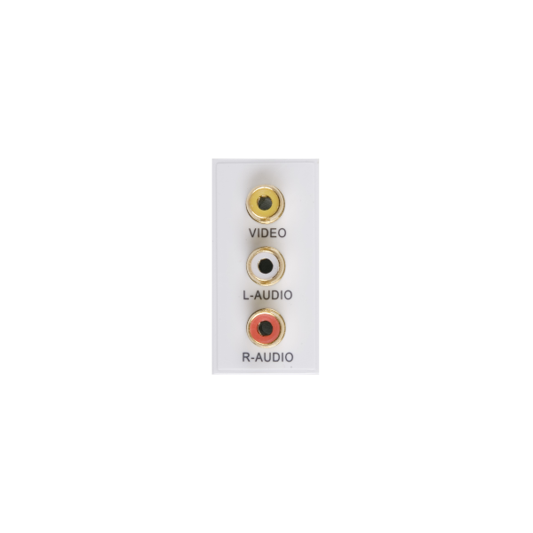 This euro module has 3 ports, one port for Video, one for Right Sound and one for Left Sound  - requires three audio / video coax cables. This module has the size name of `Half module` with a size of 25 x 50mm.